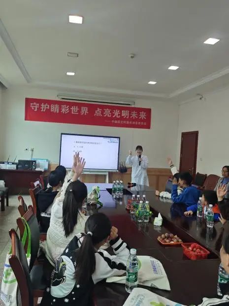 小朋友们积极举手回答问题,现场氛围热烈而融洽。通过这一环节,小朋友们对角膜塑形镜的护理知识有了更为深刻的理解和掌握。